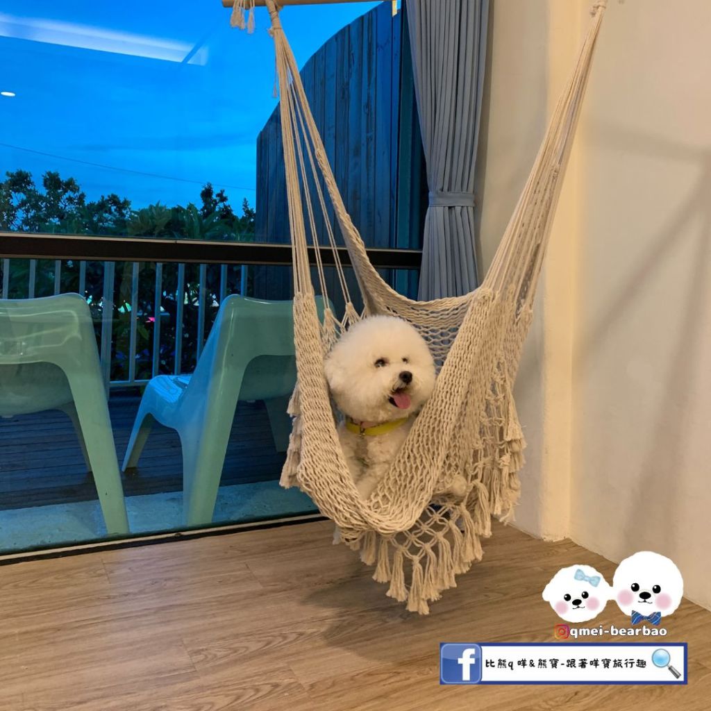 推開落地窗看出去即是南灣,沙灘到了晚上滿滿的酒吧,距離墾丁大街車程僅十分鐘。寵物可入住的房型很大,有個可以悠閒曬太陽的小陽台。