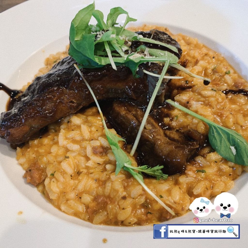 室內用餐空間非常寬敞,窗邊沙發位還能看著戶外的庭院。餐點有義大利麵、燉飯、漢堡,也有排餐可選擇,價格適中。