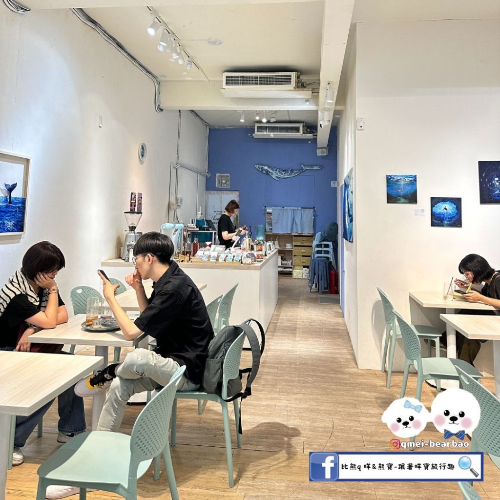 店內的裝璜都是藍色海洋風格,還有小鯊魚玩偶及魚缸,陪伴著一起用餐。店內以藍色的色系裝潢,讓人彷彿像是身處在海島似的,心情會有放鬆感覺。