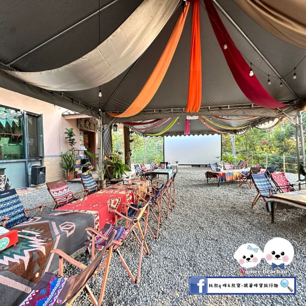 住宿有附早、晚兩餐,晚餐營區提供鴛鴦火鍋吃到飽,邊吃還有素人歌手駐唱點歌的橋段。餐後還能跟三五好友一起享受露天電影院,飯後甜點還有營區升火烤棉花糖。