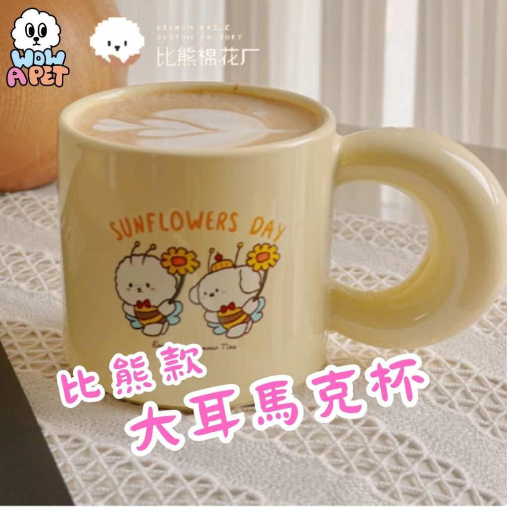 大耳朵+奶黃色杯身=溫暖可愛感小蜜蜂比熊圖案,超級可愛!❤️用這杯子喝水~根本幸福到爆炸!❤️